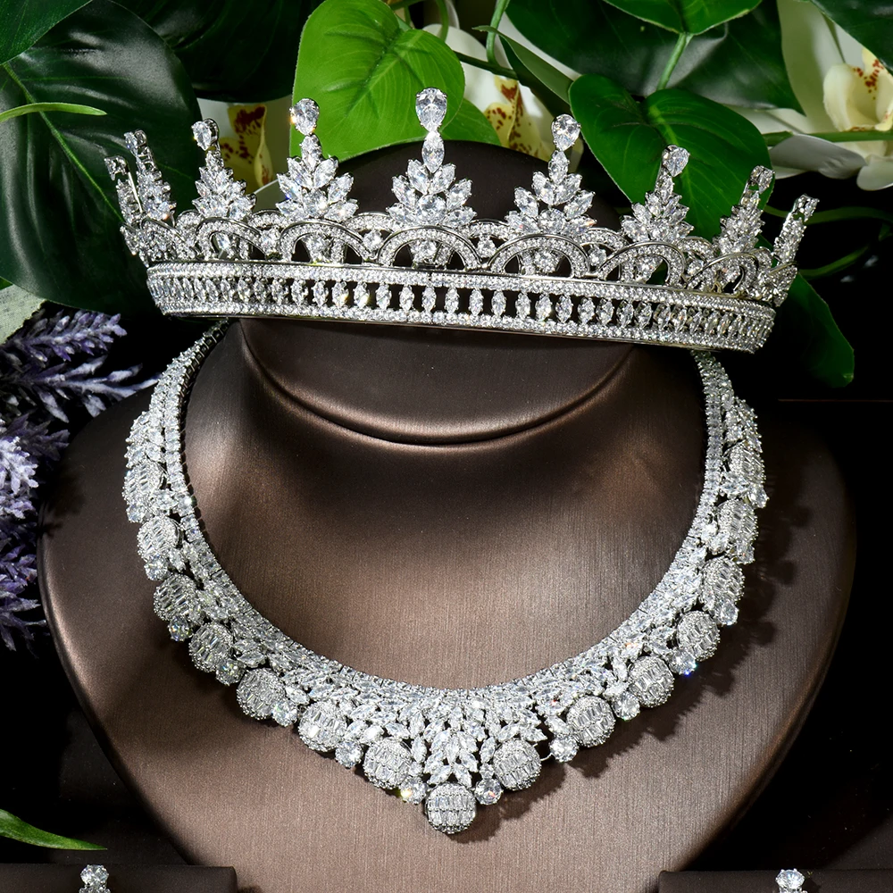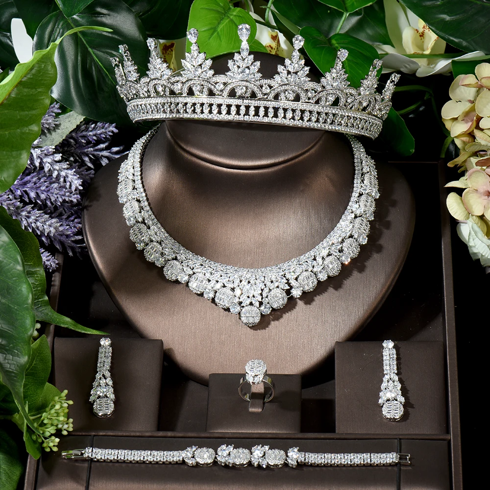 Product Name: Ensemble De Bijoux En Forme De Fleur, 5 Pièces, Vente En Gros, Couronne De Mariée, Ras Du Cou, Pour Fête De Mariage, N-1641
