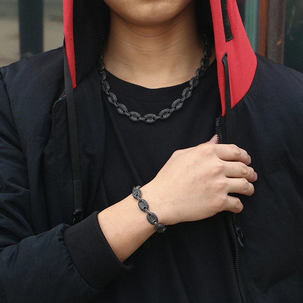 Product Name: Nouveauté Iced Out Nez De Cochon Chaîne Bracelet Collier Ensembles Noir AAA Bling Zircon Pierre Hip Hop Collier Pour Hommes Femmes Ensemble De Bijoux