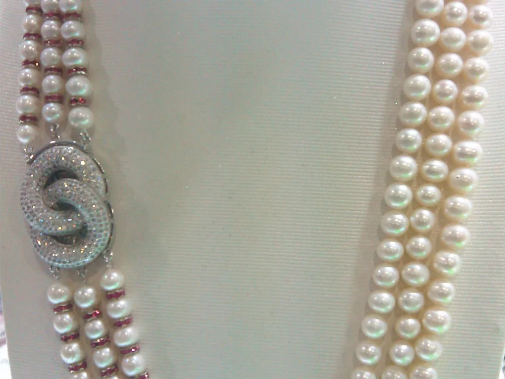 [NEW!!] Achat Collier De Perles D Eau Douce Blanches, 3 Rangées Naturelles AA 9 10mm, Vente En Gros, 004 Pas Cher
