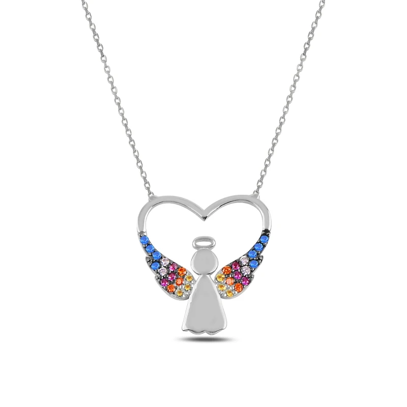 Product Name: Collier En Argent Sterling 925 Avec Coeur Et Ange En Zircon Coloré