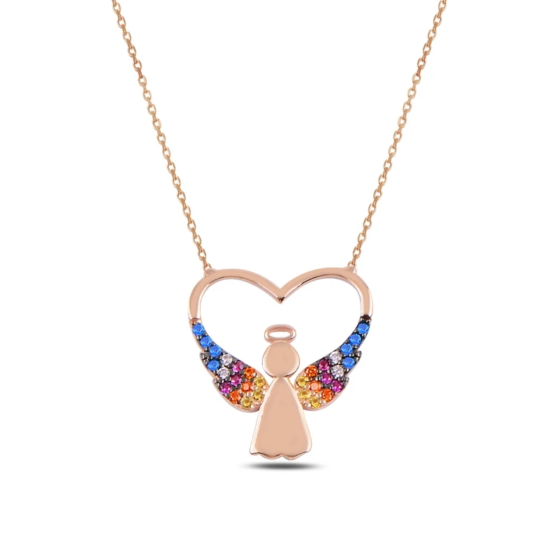 [NEW!!] Acheter Collier En Argent Sterling 925 Avec Coeur Et Ange Zircon Coloré Pas Cher