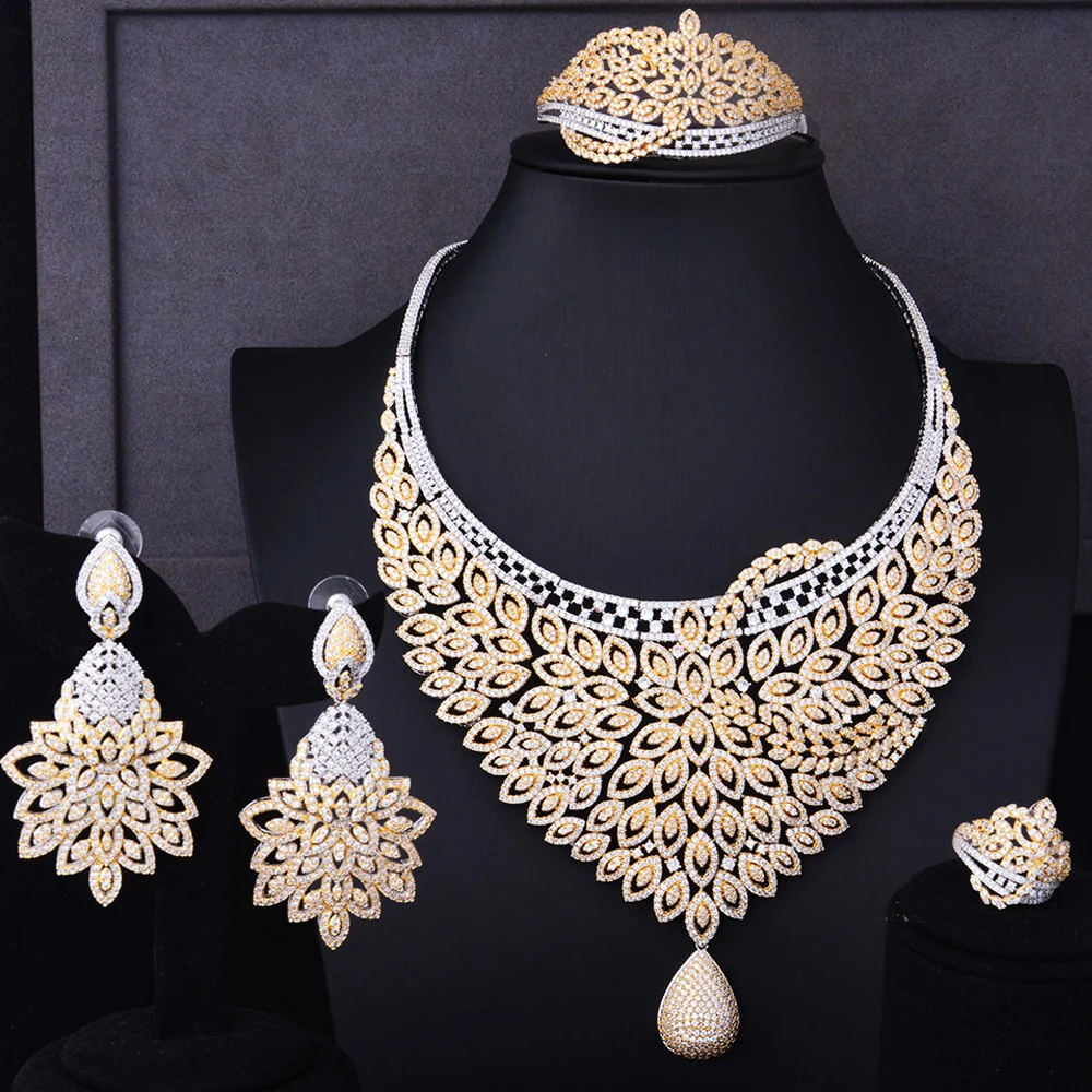 [NEW!!] Acheter GODKI – Ensemble De Bijoux Luxe Pour Femmes, Boucles D Oreilles En Forme Plume, Zircone Cubique, Ras Du Cou, Dubaï Prix