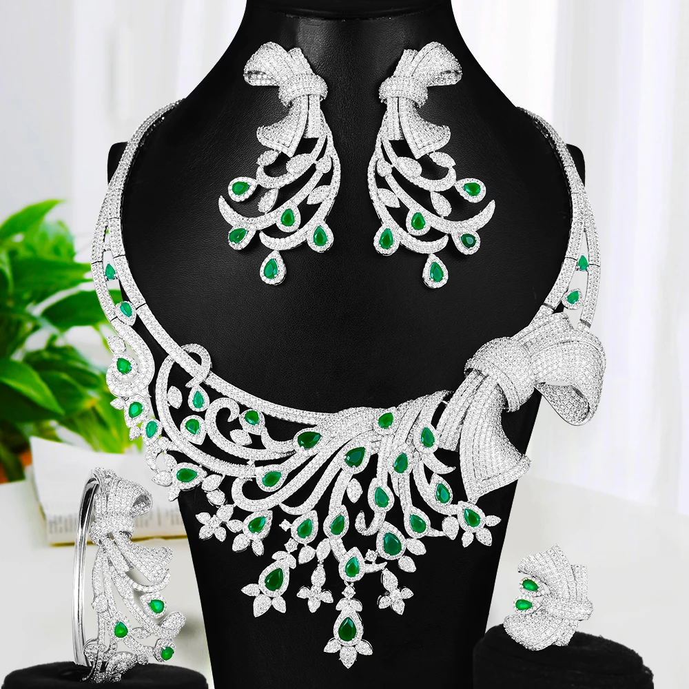 (18%OFF) Vendre KellyBola – Parure De Bijoux Luxe Pour Femmes, Ensemble Ras Du Cou Nigérian, Feuille Palmier, Zircon Cubique, Mariée Or Dubaï Prix