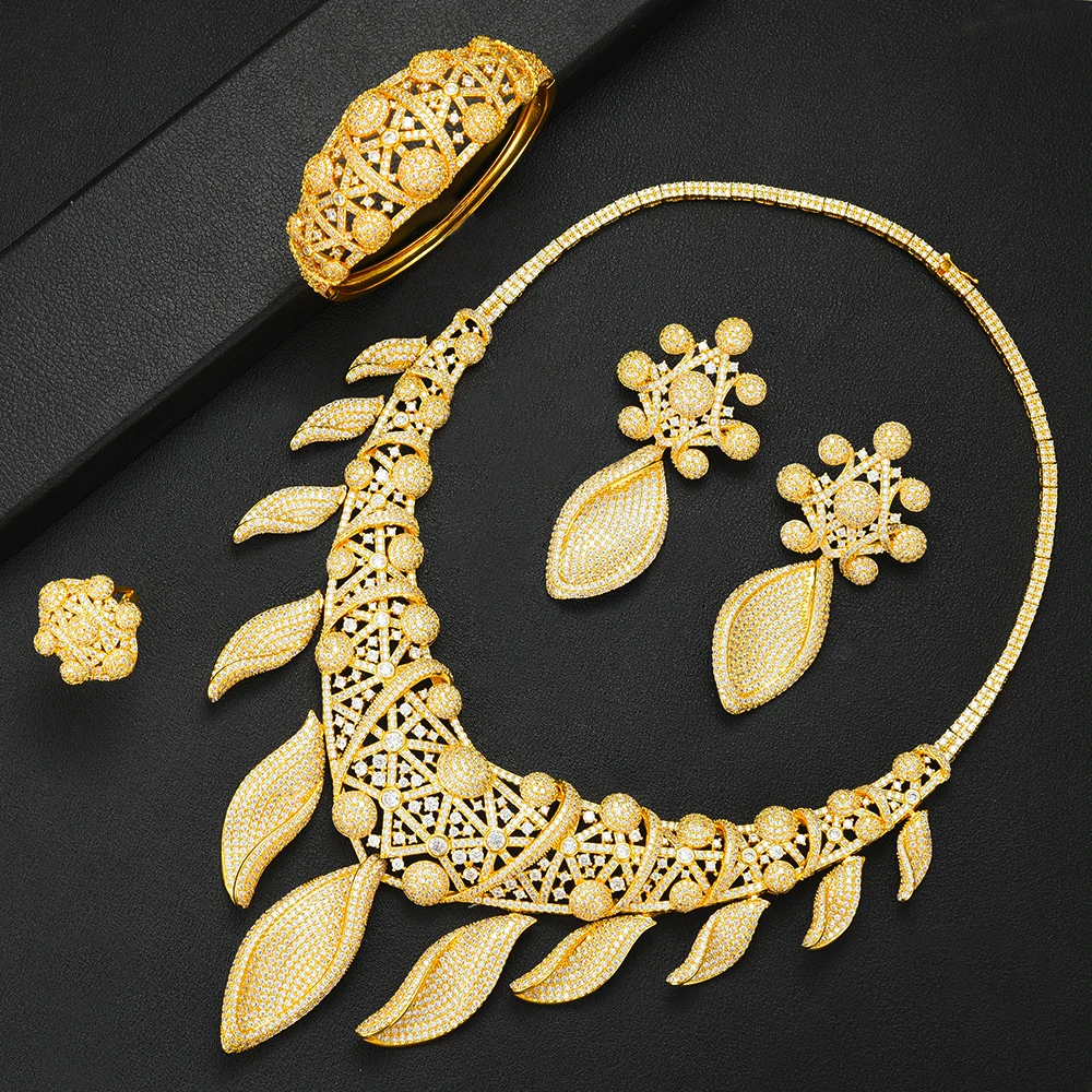 Product Name: Missvikki – Parure De Bijoux En Forme De Feuille De Palmier Pour Femmes, En Zircone Cubique, Ras Du Cou Nigérian, Parure De Bijoux De Mariée De Mariage De Dubaï