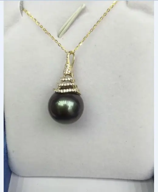 [NEW!!] Vendre Énorme AAA 13 14mm Tahitien Rond Noir Vert Collier De Perles 14k Chaîne Pas Cher