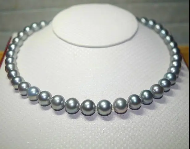Product Name: Collier De Perles Rond Gris Argent, 9 ~ 10 MM, 18 Pouces, Bonne Livraison