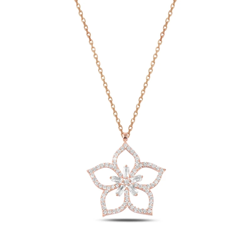 Product Name: Ensemble De Bagues à Fleurs En Argent Sterling 925 Et Collier En Cristal De Zircon