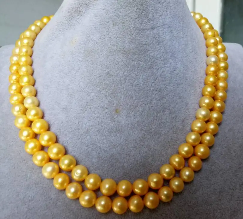 [NEW!!] Achat Beaux Bijoux Belle 8 9mm Ronde Collier De Perles Naturelles 50 "fermoir Jaune En Gros Pas Cher